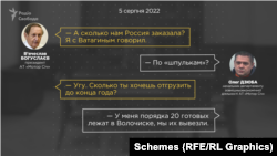 У розпорядженні «Схем» є розмова, яка також свідчить про інше. У серпні 2022 року, на 7-й місяць повномасштабної війни Росії проти України, Дзюба та Богуслаєв віч-на-віч обговорюють схему постачання двигунів для цієї країни – називаючи їх «шпульками».