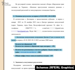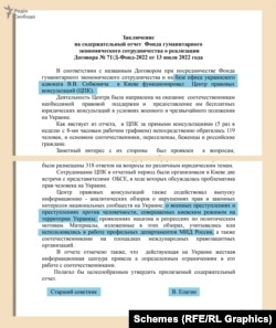 У звіті фонду про його роботу, який «Схеми» розшукали у витоку, є розділ – «Український напрямок». У ньому детально описується робота, яку «Правфонд» веде на території України. Наприклад, функціонування в Києві «Центру правових консультацій», адвокати якого вели прийом громадян, а сам центр готував звіти для російської влади про «воєнні злочини ЗСУ» та «порушення прав російськомовного населення».