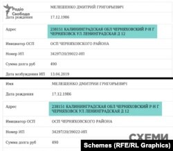 Усього в Росії журналісти знайшли 35 людей з таким прізвищем та першою літерою імені. Та увагу журналістів привернув один чоловік – 36-річний Дмитро Мєлєшенко – випускник військового училища у Єкатеринбурзі, нині зареєстрований за адресою артилерійської бригади у складі Балтійського флоту, яка бере участь у повномасштабному вторгненні Росії в Україну.