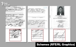 «Схеми» також звернули увагу на схожість підпису у формі 1П на отримання російського паспорту на ім’я Аріни Літвінової з підписами, які містяться в досьє судді.