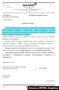 У листі від 3 березня ситуацію, що склалася, компанія-підрядник називає критичною і повідомляє, що через санкції вона не може купити необхідне обладнання та просить «Омегу» внести зміни у робочу документацію.