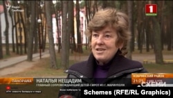 Зв'язатися із Наталією Нещадим журналістам не вдалося, однак «Схеми» знайшли її в сюжетах білоруських пропагандистських ЗМІ. Вона супроводжувала українських дітей у Білорусь.