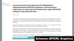 Також Радіо Свобода встановило, що до організації так званого відпочинку дітей, де поширювалися проросійські наративи, у 2022-му було причетне білоруське відділення ЮНІСЕФ (ООН).