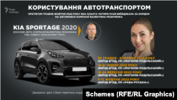 Вже після початку повномасштабного вторгнення РФ Яна Хланта більше не перетинала кордон разом із Резніченком. Але 4 рази вона виїжджала за межі України сама на автомобілі Kia Sportage. «Схеми» встановили, що власник автомобіля – компанія, яка на 100% належить голові Дніпропетровської ОВА, її назва – «Севент Консалтинг Груп».