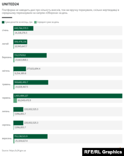 «У серпні ми з партнерами за три дні зібрали 235 мільйонів гривень на 10 тисяч FPV-дронів і боєприпаси до них. Це пояснює різке зростання проти середнього показника», – пояснили Радіо Свобода в пресслужбі фонду.