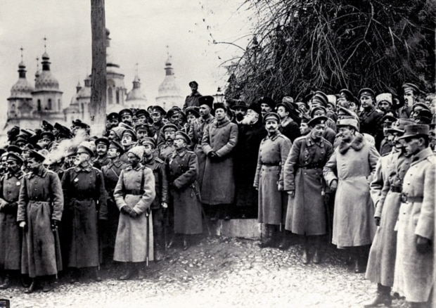Усього в 1917-му відбулися три українські військові з’їзди. Відчуваючи за собою підтримку українських військових, лідери Центральної Ради могли вимогливіше поводитися на переговорах із Тимчасовим урядом. Утім, очільники українського руху з пересторогою ставилися до військового руху та відкидали ідею створення української армії. «Не своєї армії нам треба, а знищення усяких постійних армій, – переконував солдатів-українців заступник голови Центральної Ради Володимир Винниченко. – Українського мілітаризму не було і не повинно бути!»