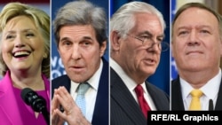 Двері НАТО відкриті для України, але Київ сам має вирішувати, чи вступати йому до альянсу – на цьому в 2010 році наголосила державний секретар США Гілларі Клінтон. У розпал війни на Донбасі в 2015 році Джон Керрі заявив, що Штати не можуть «заплющити очі на російських бойовиків без розпізнавальних знаків», а Рекс Тіллерсон наполягав на перших кроках із боку Росії в питанні деескалації бойових дій на сході України в 2017 році. Нині ж Майк Помпео на цій же посаді держсекретаря ставить собі питання: «Чи американцям не байдужа Україна?», – проте обіцяє, що США продовжують захищати суверенітет і територіальну цілісність України. Радіо Свобода пригадує візити державних секретарів США в Україну за останні 10 років.