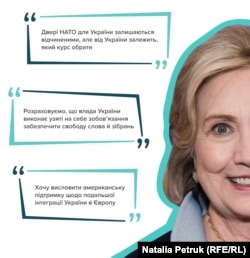 2010 рік – Сполучені Штати Америки підтримують євроінтеграцію України і її прагнення збалансувати інтереси між Росією і США. Про це під час свого візиту до Києва на початку липня 2010 року заявляла державний секретар США Гілларі Клінтон. На зустрічі з тодішнім президентом України Віктором Януковичем Клінтон стверджувала, що двері НАТО для України залишаються відчиненими, але Київ сам має вирішувати, чи вступати йому до альянсу. У свою чергу, Віктор Янукович декларував позаблоковість і нейтральність України. За кілька днів до приїзду Клінтон Верховна Рада проголосувала за закон «Про засади внутрішньої та зовнішньої політики», з якого вилучили пункт про набуття членства в НАТО і який до парламенту подав сам Віктор Янукович. Кнопку «за» тоді натиснули понад 250 народних депутатів.