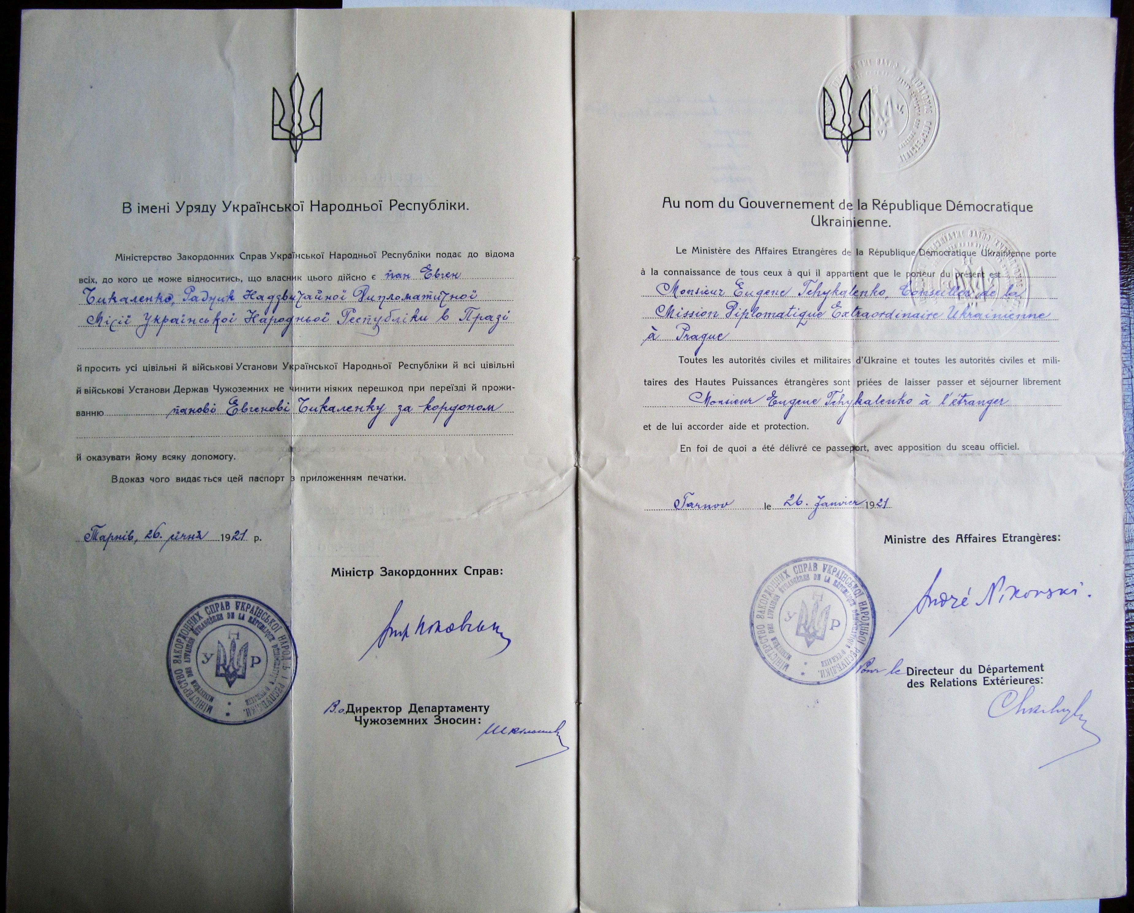 Посвідка 1921 року, видана Євгену Чикаленку урядом УНР